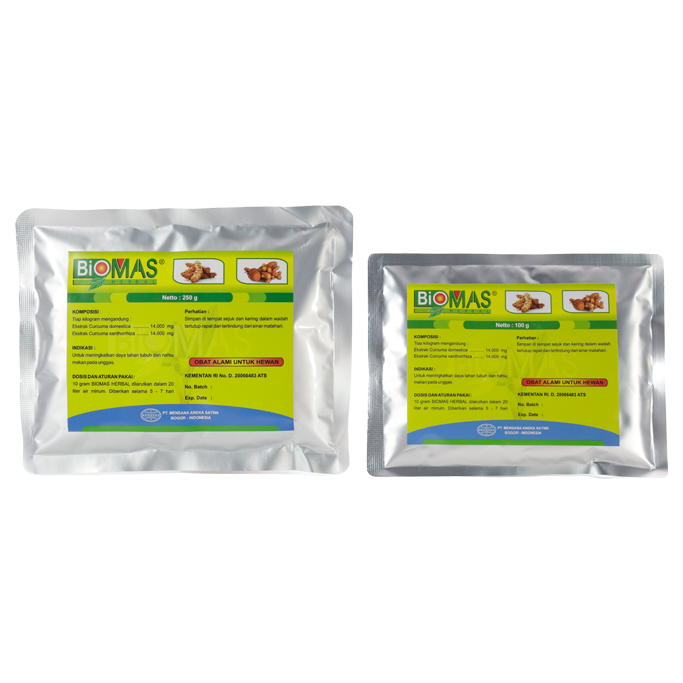BIOMAS merupakan produk yang mengandung kombinasi ampuh herbal kunyit dan temu lawak dalam bentuk water soluble powder