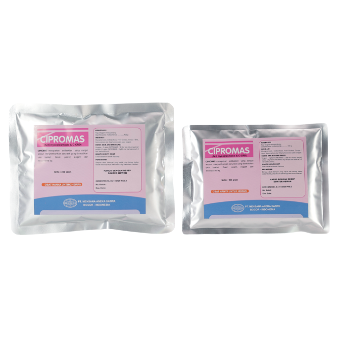 CIPROMAS merupakan produk yang memiliki kandungan Ciprofloxacine, water-soluble powder