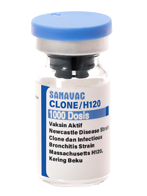 SANAVAC CLONE / H120 merupakan vaksin aktif kering beku yang mengandung virus aktif Newcastle Disease Strain Clone dan Infectious Bronchitis Strain Massachusetts H120