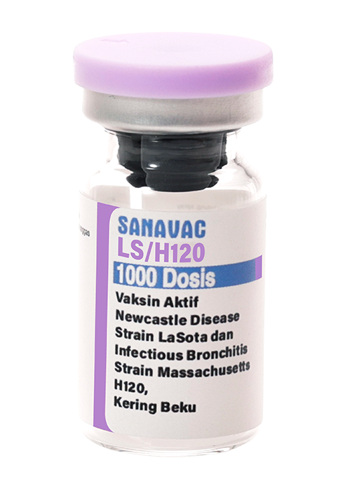 SANAVAC LS / H120 merupakan vaksin aktif kering beku yang mengandung virus Newcastle Disease Strain LaSota dan virus Infectious Bronchitis Strain Massachusetts H120