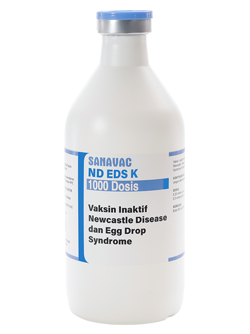 SANAVAC ND EDS K merupakan vaksin inaktif berbentuk emulsi mengandung virus Newcastle Disease Strain LaSota dan virus Egg Drop Syndrome ’76 Strain FC 127