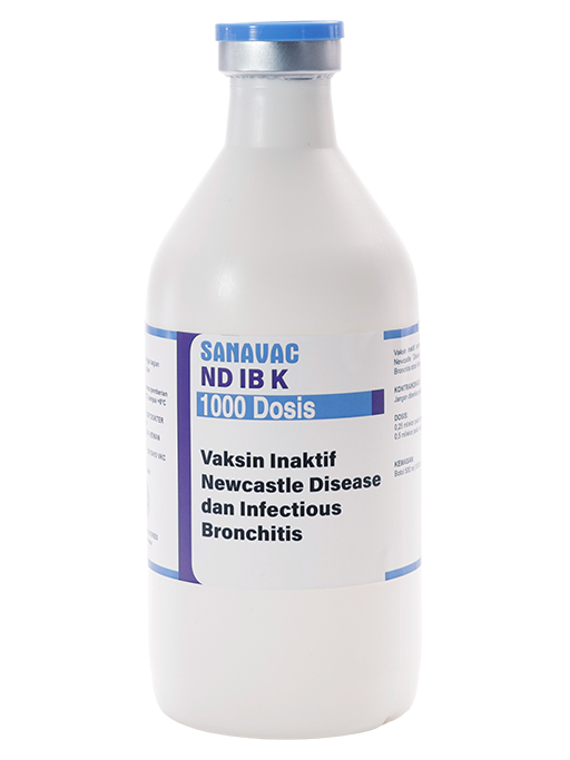 SANAVAC ND IB K merupakan vaksin inaktif berbentuk emulsi mengandung virus Newcastle Disease Strain LaSota dan virus Infectious Bronchitis Strain Massachusetts H52